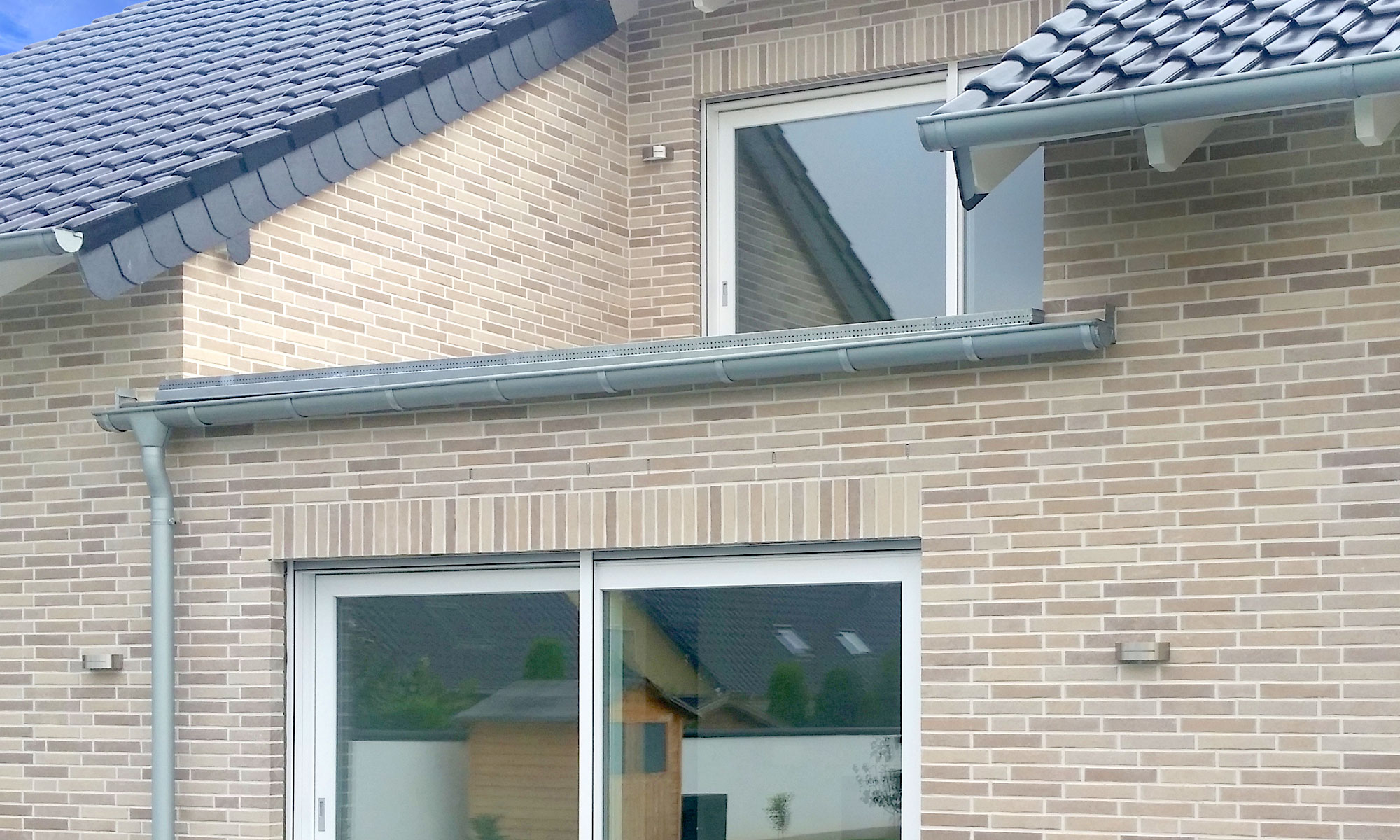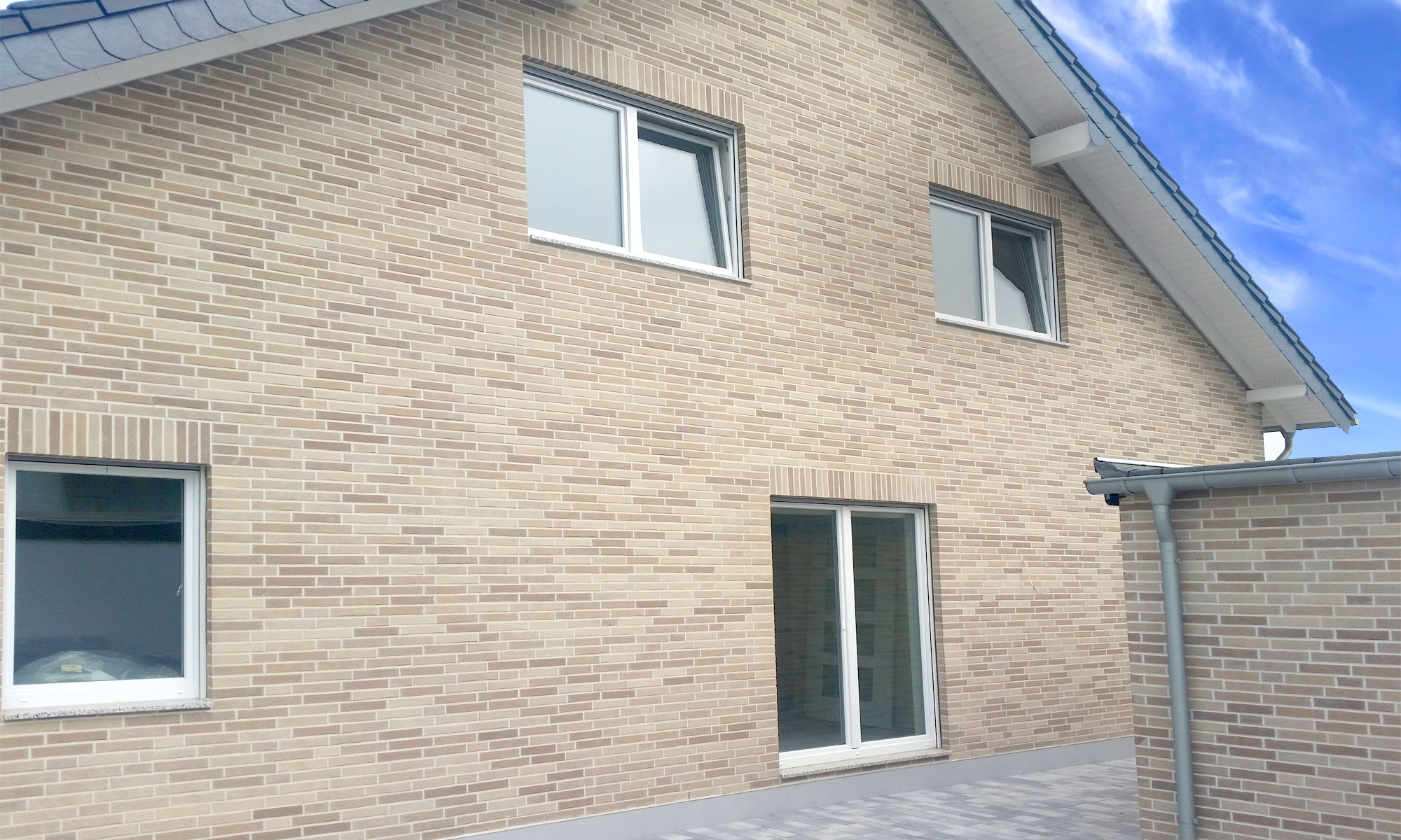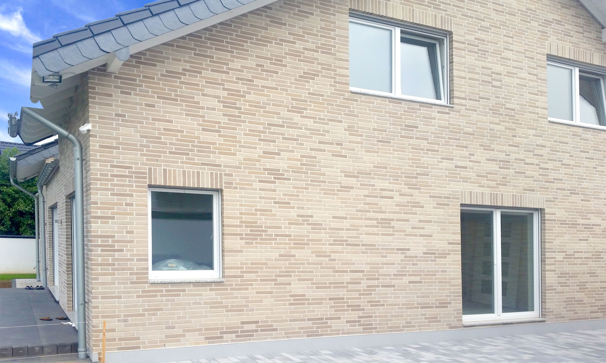 Klinker Salinagrau ca 1.000m², Wärmedämmung, L Abdichtung Z-Folie, Verblendabfangung (Winkelkonsolanker), Stürze, Verfugung
